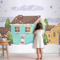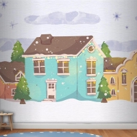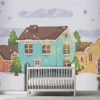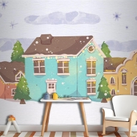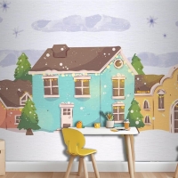 Suluboya Noel Kasabası Çocuk Odası Duvar Kağıdı