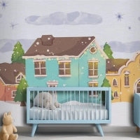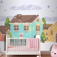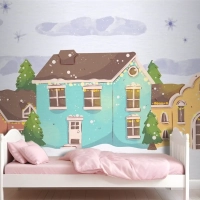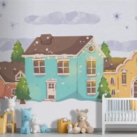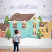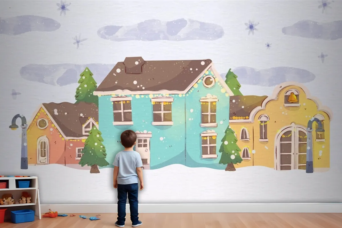 Suluboya Noel Kasabası Çocuk Odası Duvar Kağıdı