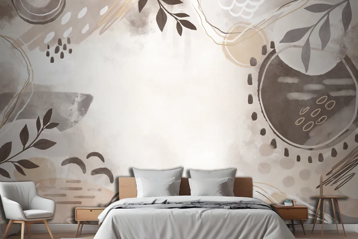 Suluboya Nötr Toprak Tonları Yatak Odası Duvar Kağıdı