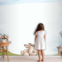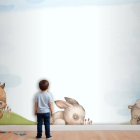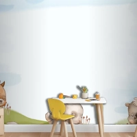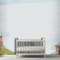 Suluboya Orman Hayvanları Arka Plan Çocuk Odası Duvar Kağıdı