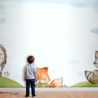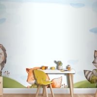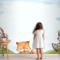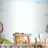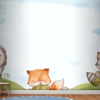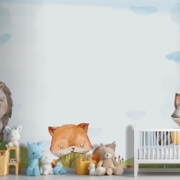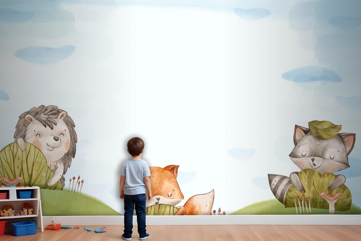 Suluboya Orman Hayvanları Arka Plan Çocuk Odası Duvar Kağıdı