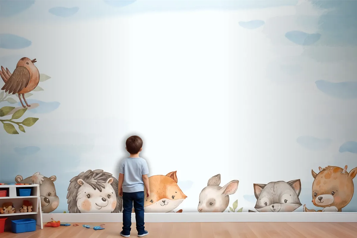 Suluboya Orman Hayvanları Çocuk Odası Duvar Kağıdı