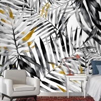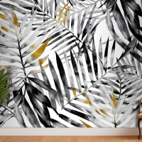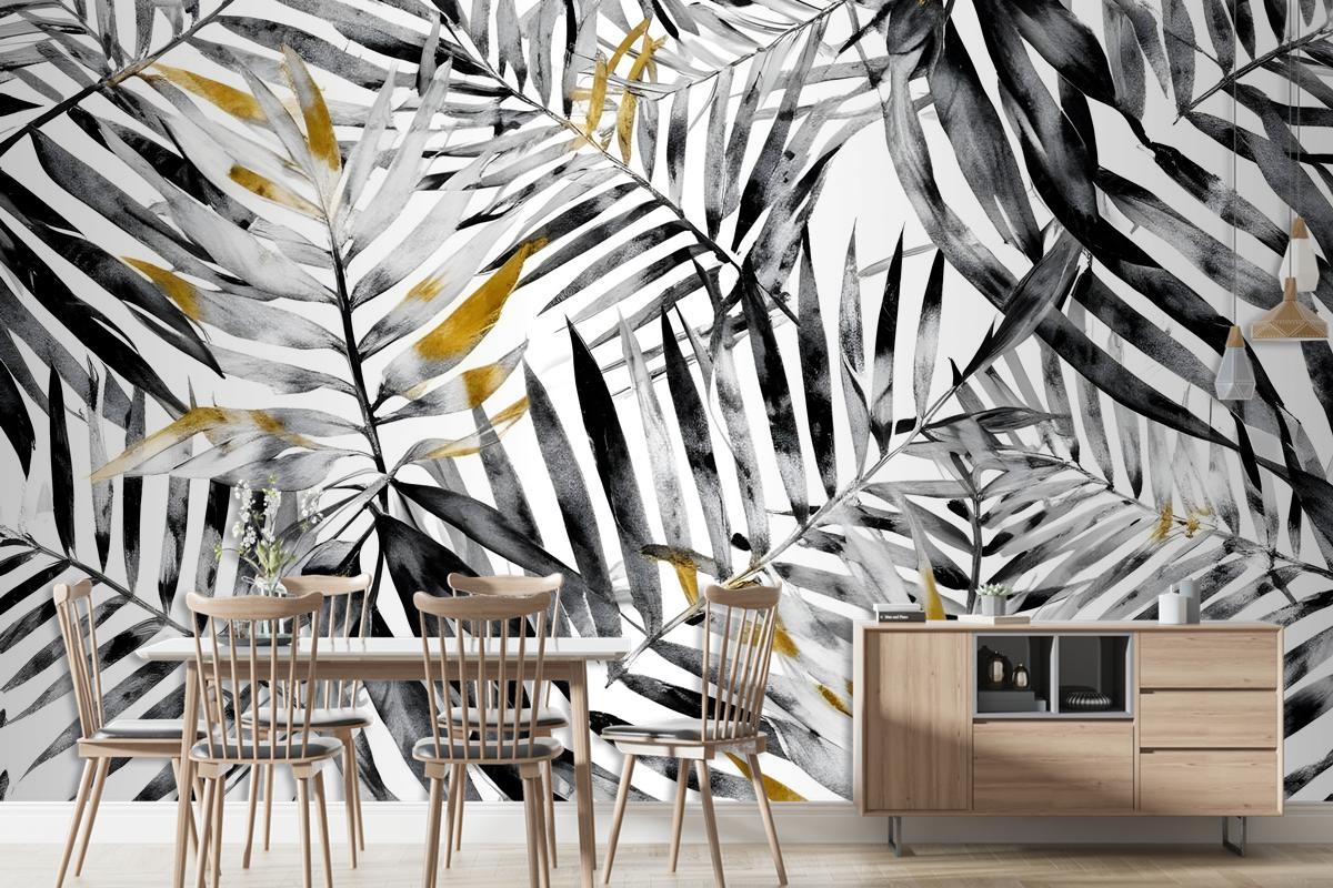 Suluboya Palmiye Yaprağı Desenli Duvar Kağıdı