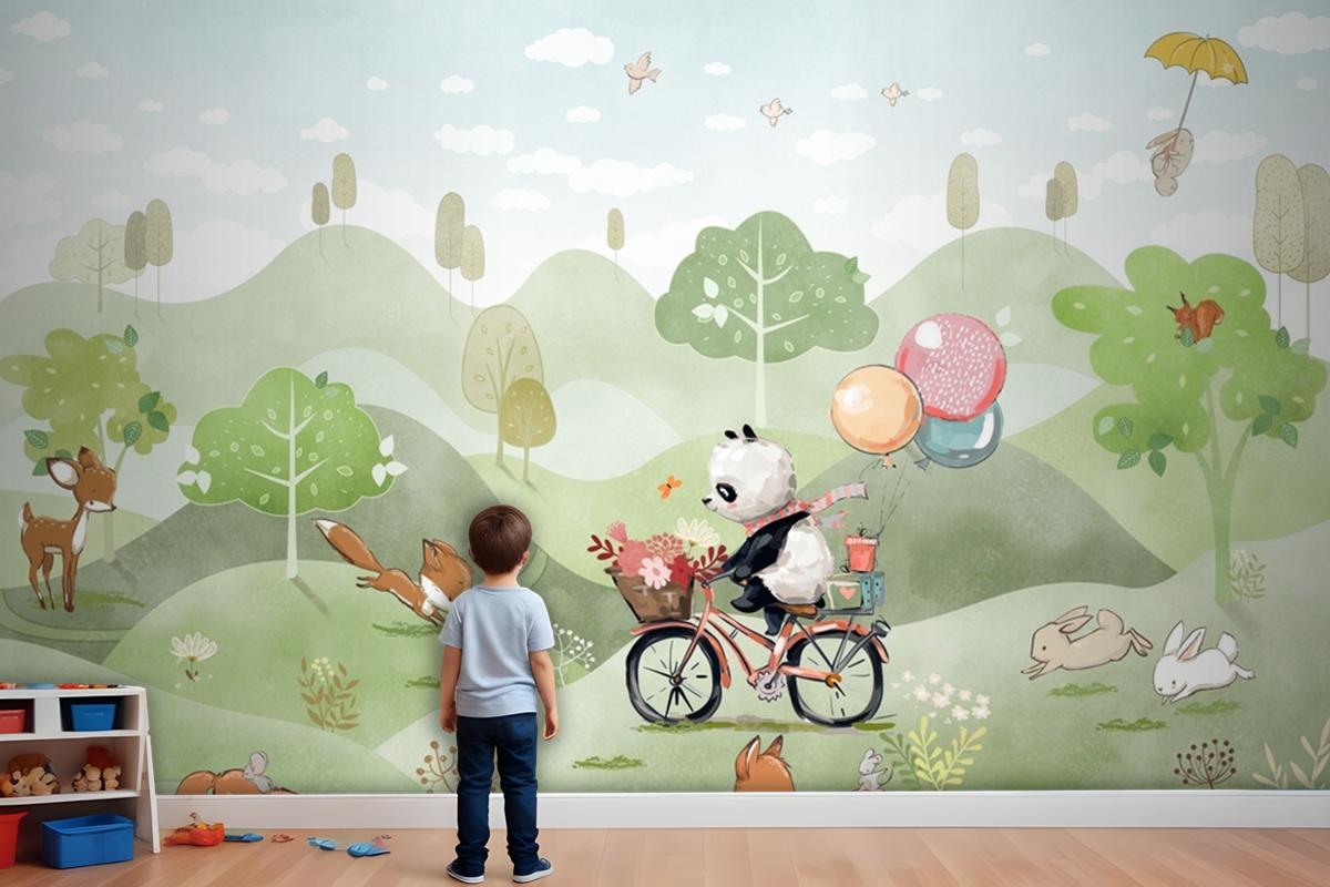 Suluboya Panda Çocuk Odası Duvar Kağıdı