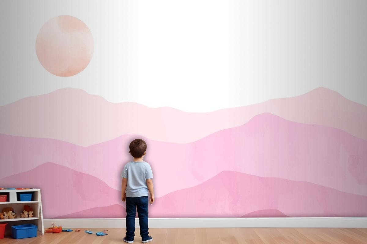 Suluboya Pastel Dağlar Arka Plan Çocuk Odası Duvar Kağıdı