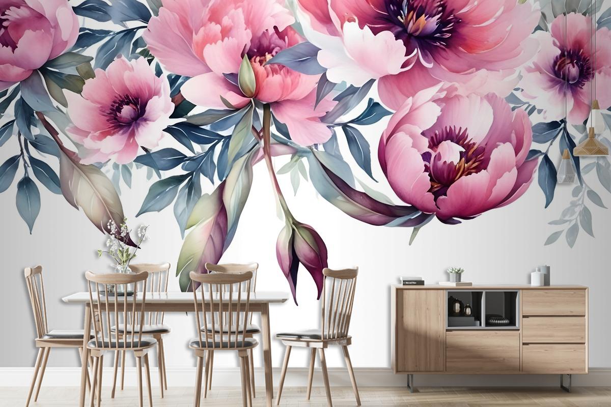 Suluboya Pembe Şakayık Çiçeği Duvar Kağıdı