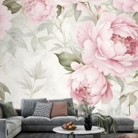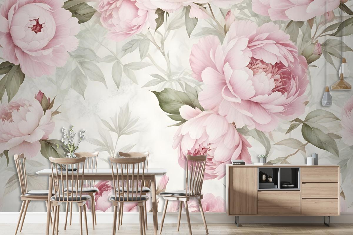 Suluboya Pembe Şakayık Çiçek Çiçeği Duvar Kağıdı