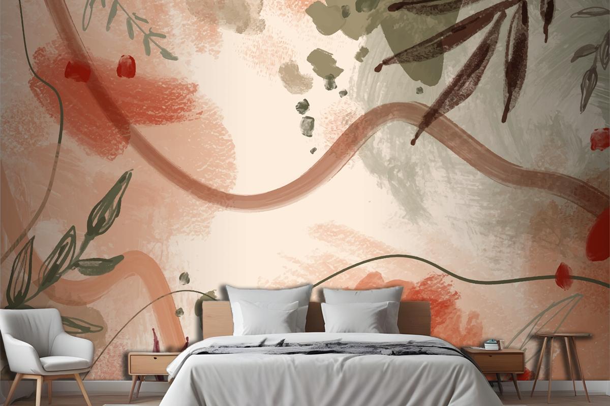 Suluboya Pişmiş Toprak Desen Tasarım Yatak Odası Duvar Kağıdı