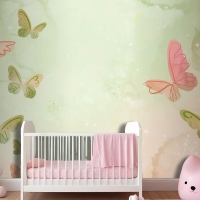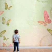 Suluboya Renkli Kelebek Arka Plan Çocuk Odası Duvar Kağıdı
