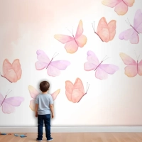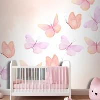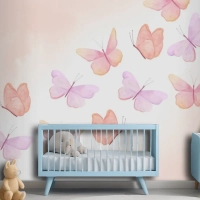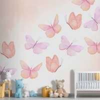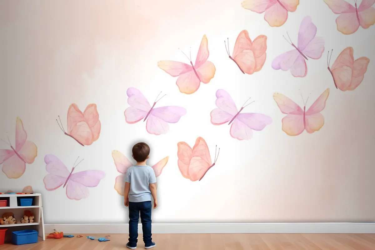 Suluboya Renkli Kelebek Arka Plan Çocuk Odası Duvar Kağıdı
