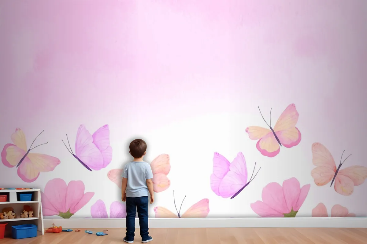 Suluboya Renkli Kelebek Arka Plan Çocuklar Çocuk Odası Duvar Kağıdı Duvar
