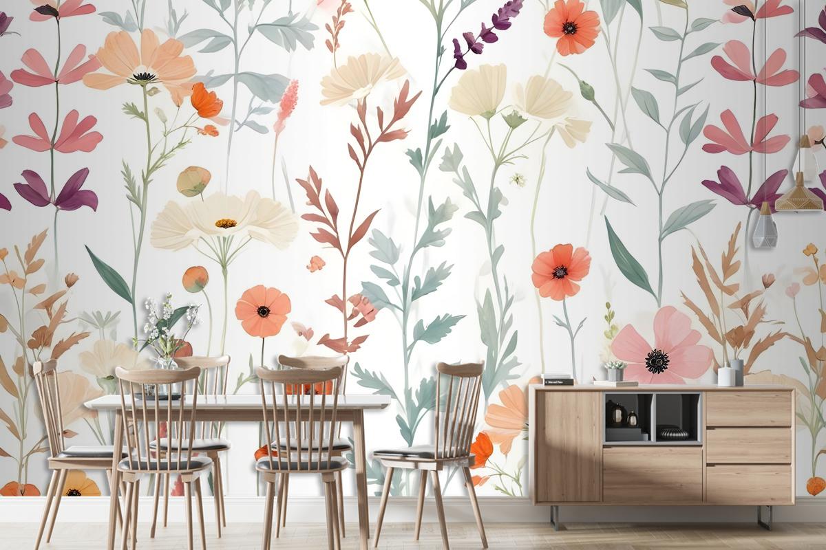 Suluboya Renkli Kır Çiçeği Bahçesi Duvar Kağıdı