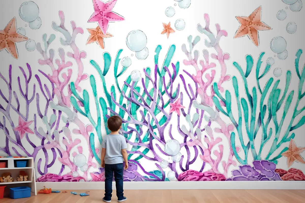 Suluboya Renkli Mercan Arka Plan Çocuk Odası Duvar Kağıdı