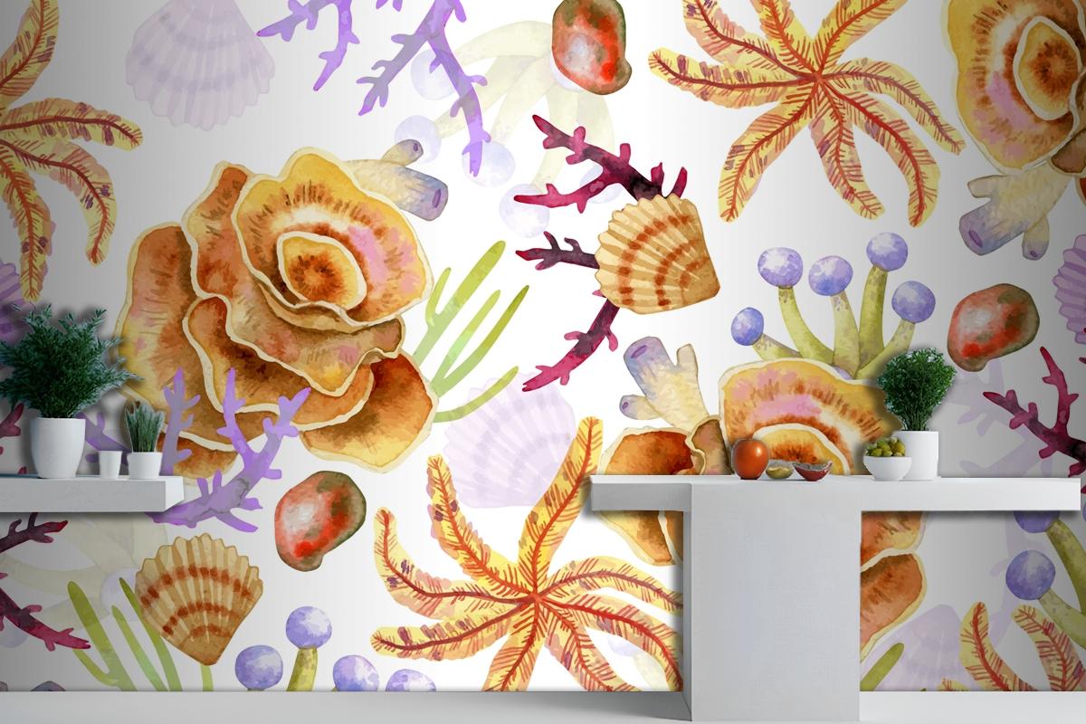 Suluboya Renkli Mercan Arka Plan Mutfak Duvar Kağıdı