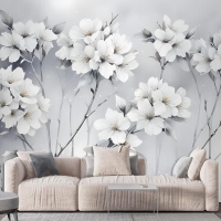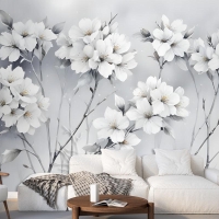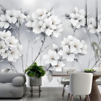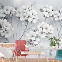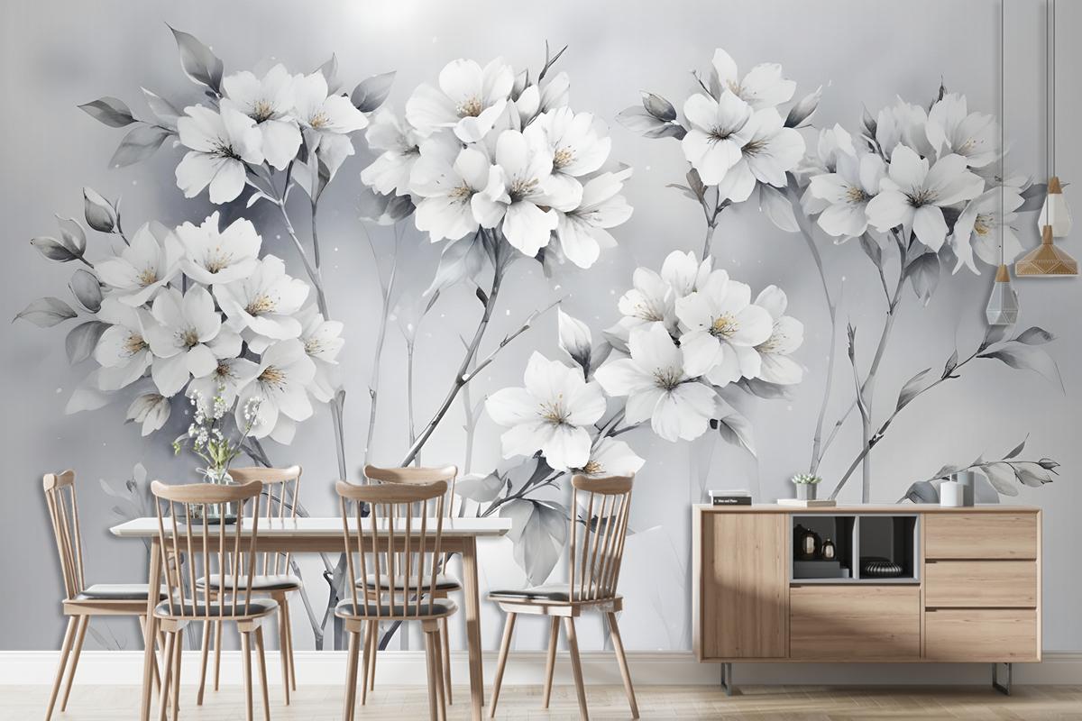Suluboya Resim Beyaz Çiçekler Duvar Kağıdı