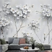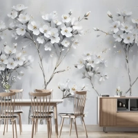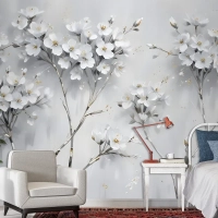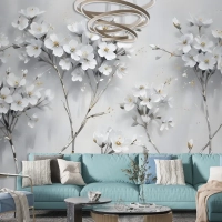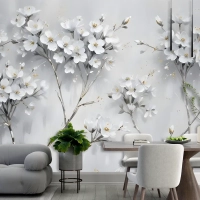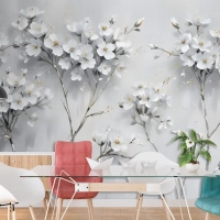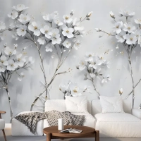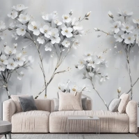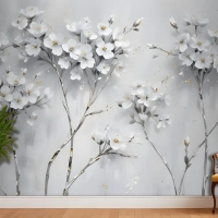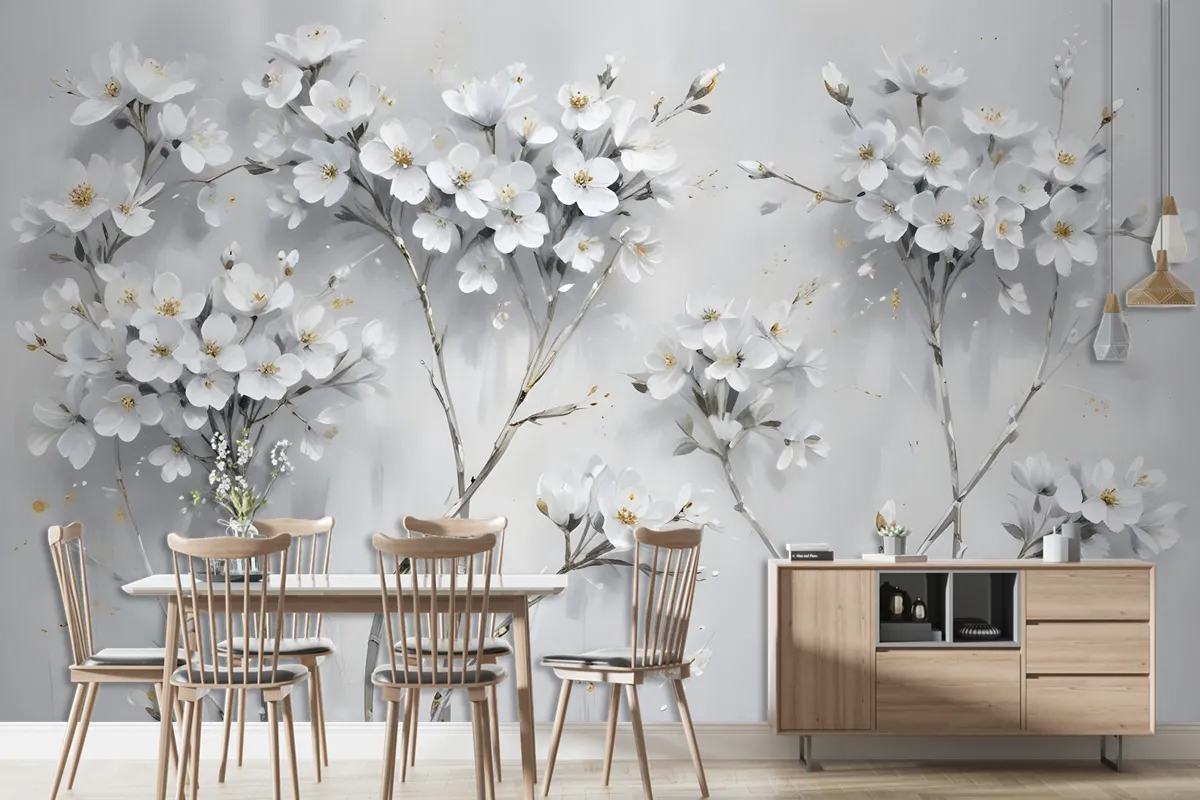 Suluboya Resim Beyaz Çiçekler Duvar Kağıdı