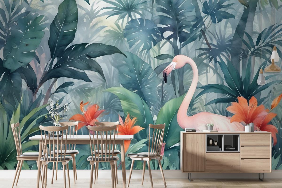 Suluboya Resim Orman Ve Leylek Duvar Kağıdı