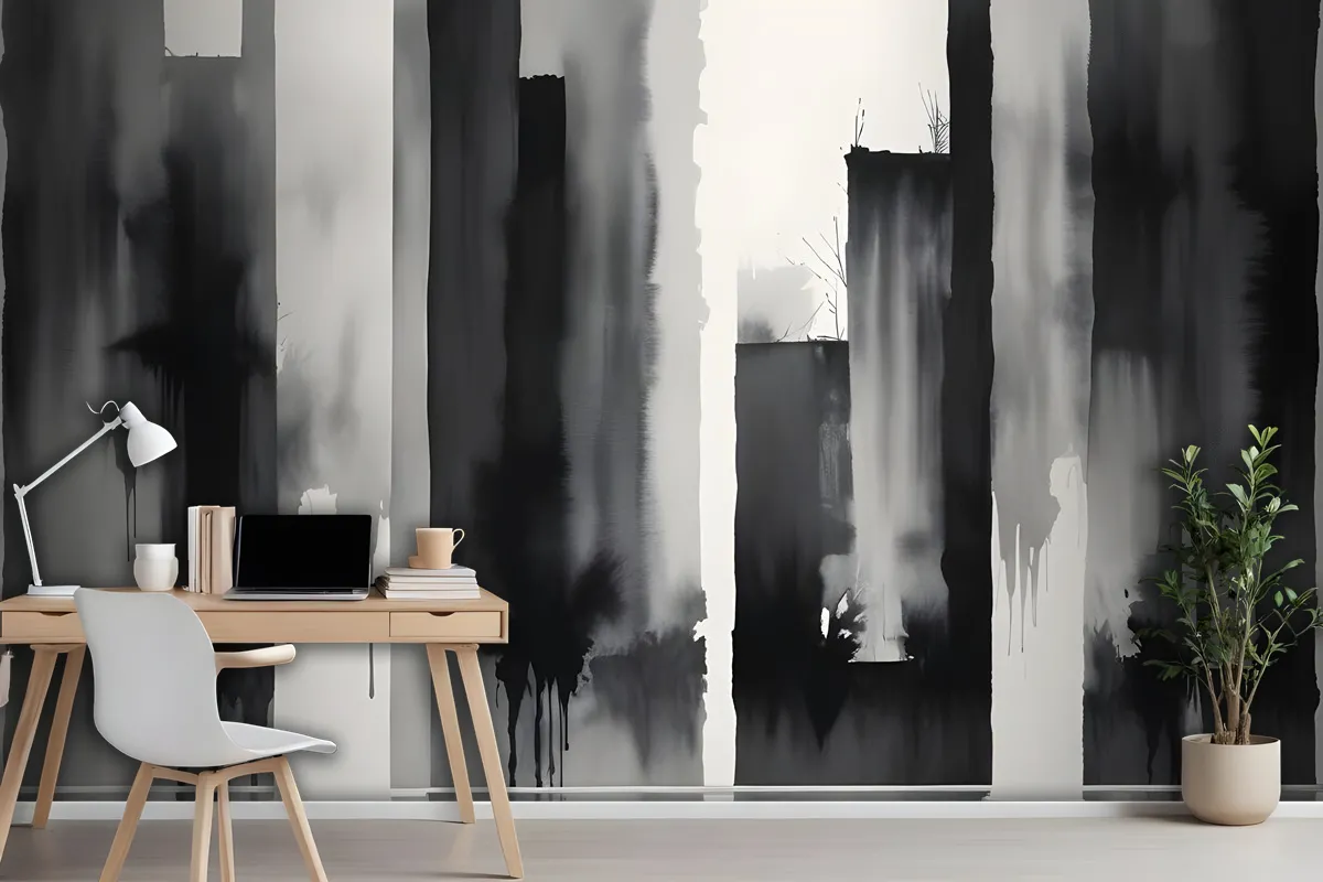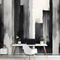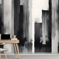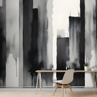 Suluboya Resim Siyah Beyaz Mimari Duvar Kağıdı