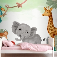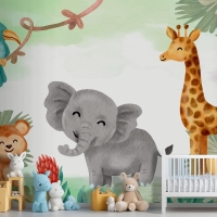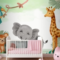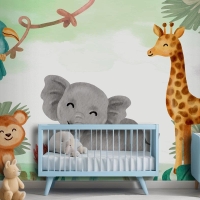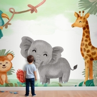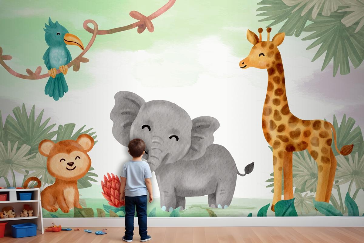Suluboya Safari Arka Plan Çocuk Odası Duvar Kağıdı