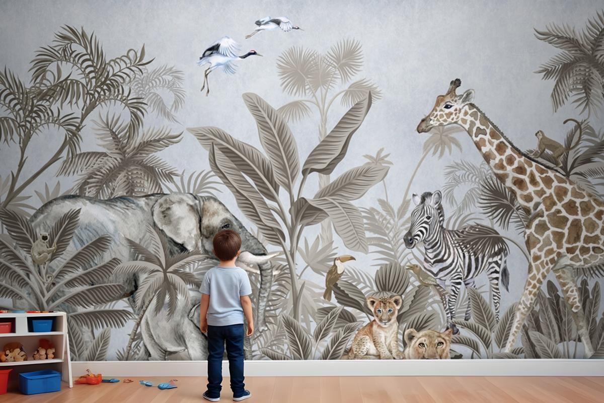 Suluboya Safari Çocuk Odası Duvar Kağıdı