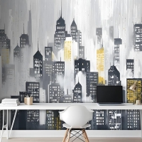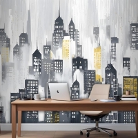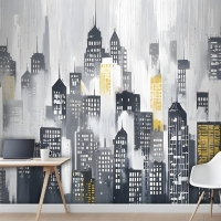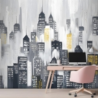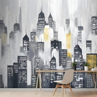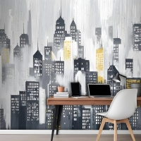 Suluboya Şehir Silueti Duvar Kağıdı