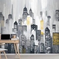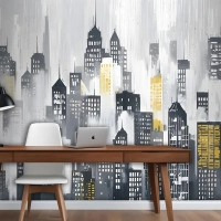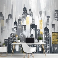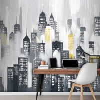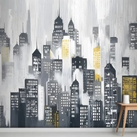Suluboya Şehir Silueti Duvar Kağıdı