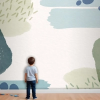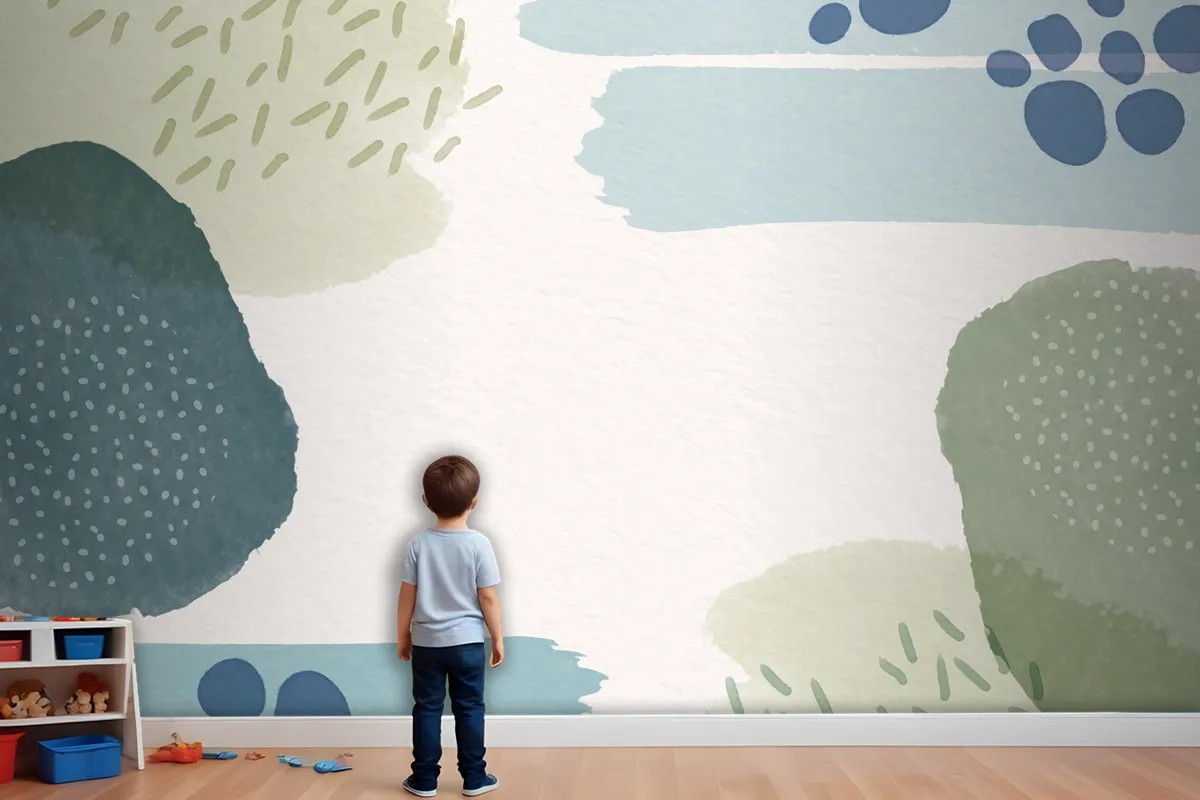 Suluboya Şekilli Ve Boş Alanlı Soyut Arka Plan Çocuk Odası Duvar Kağıdı