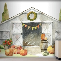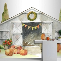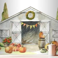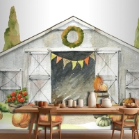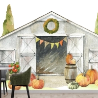 Suluboya Sonbahar Ahşap Ahır Kabak Hasat Mutfak Duvar Kağıdı