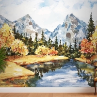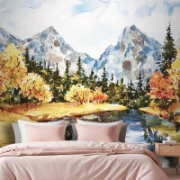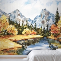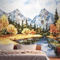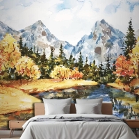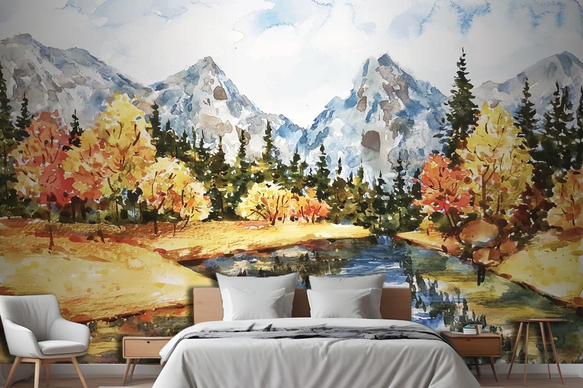 Suluboya Sonbahar Manzara Yatak Odası Duvar Kağıdı