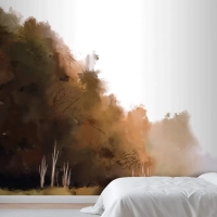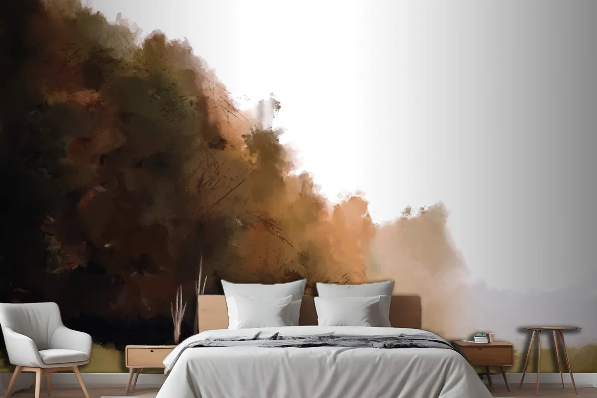 Suluboya Sonbahar Manzara Yatak Odası Duvar Kağıdı