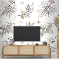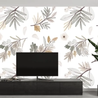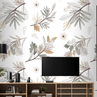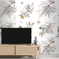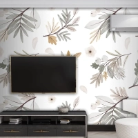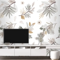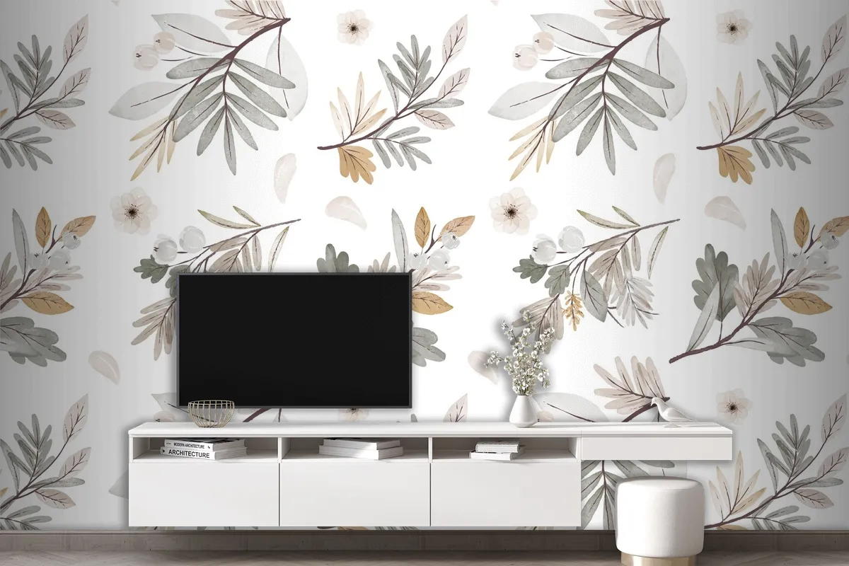 Suluboya Sonbahar Orman Buketi Deseni Tv Arkası Duvar Kağıdı
