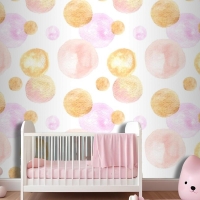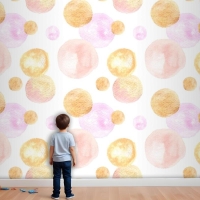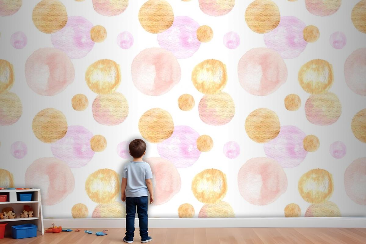 Suluboya Soyut Dairesel Noktalar Dikişsiz Desen Çocuk Odası Duvar Kağıdı