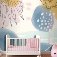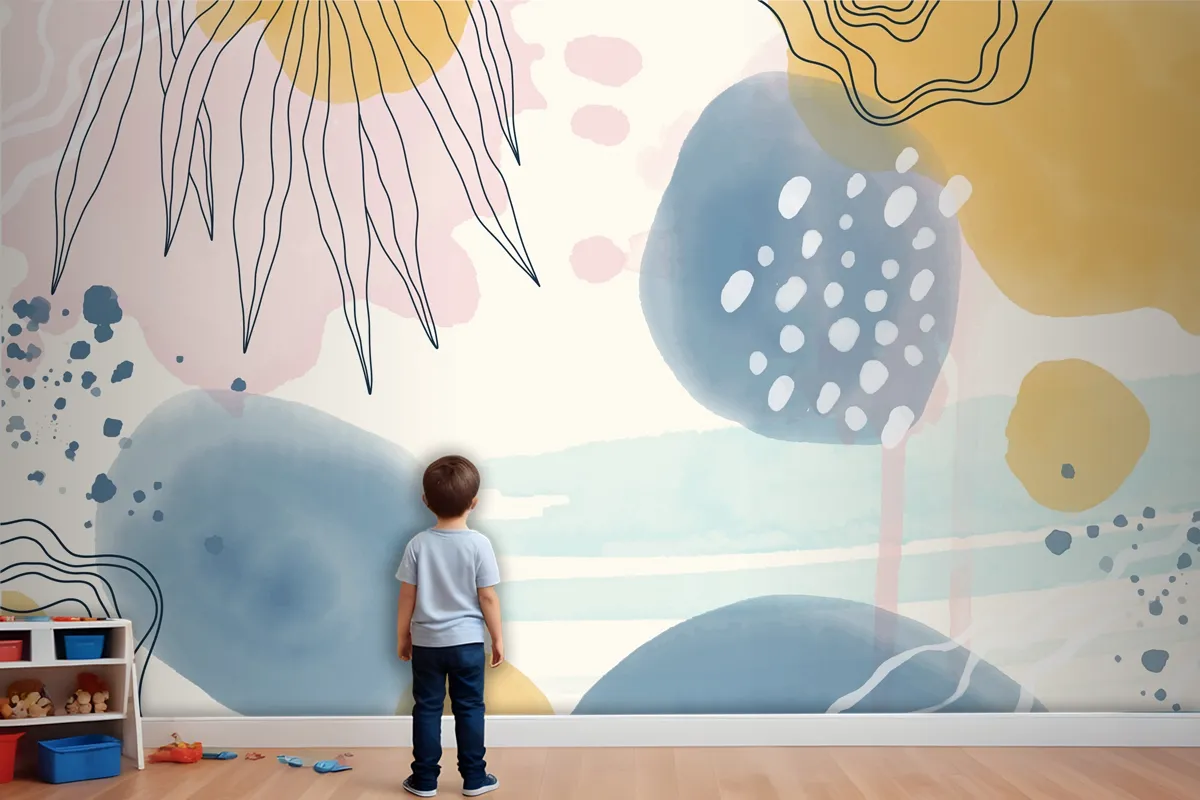 Suluboya Soyut Doodle Arka Plan Çocuk Odası Duvar Kağıdı