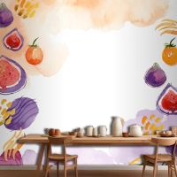 Suluboya Soyut Doodle Mutfak Duvar Kağıdı