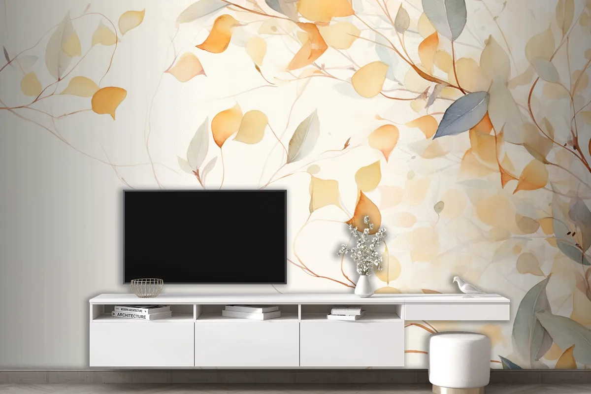 Suluboya Tasarımında Okaliptüs Yaprakları Tv Arkası Duvar Kağıdı