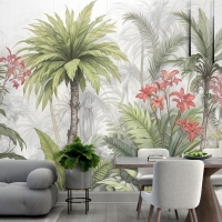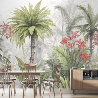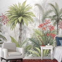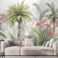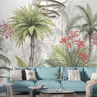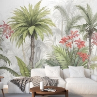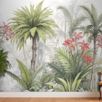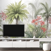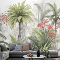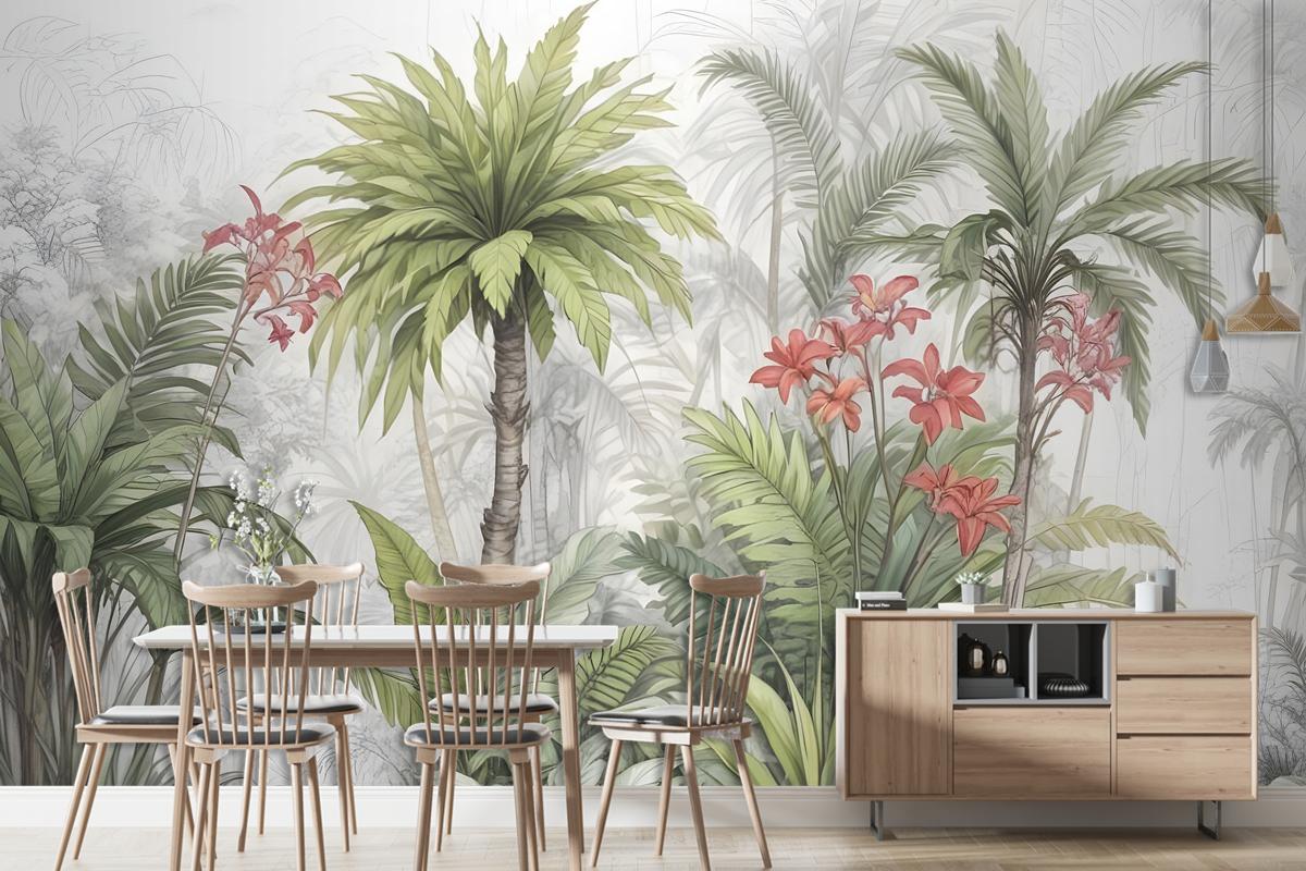 Suluboya Tropikal Yaprak Ve Çiçekler Duvar Kağıdı