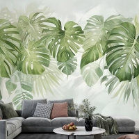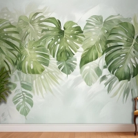 Suluboya Tropikal Yapraklar Duvar Kağıdı