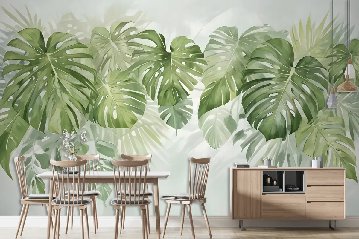 Suluboya Tropikal Yapraklar Duvar Kağıdı