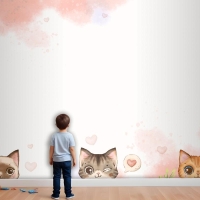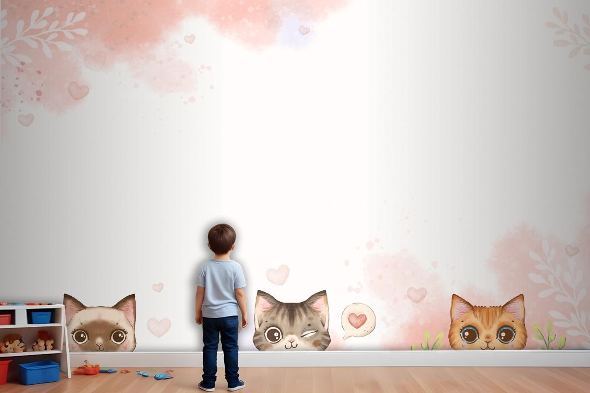 Suluboya Uluslararası Kedi Günü Çocuk Odası Duvar Kağıdı