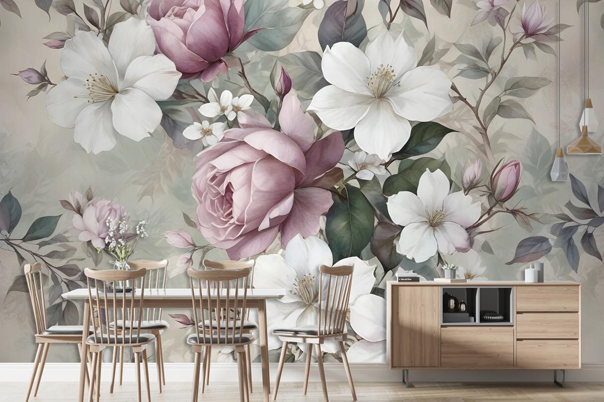 Suluboya Vintage Çiçek Duvar Kağıdı
