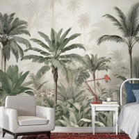 Suluboya Vintage Tropikal Orman Duvar Kağıdı