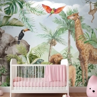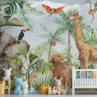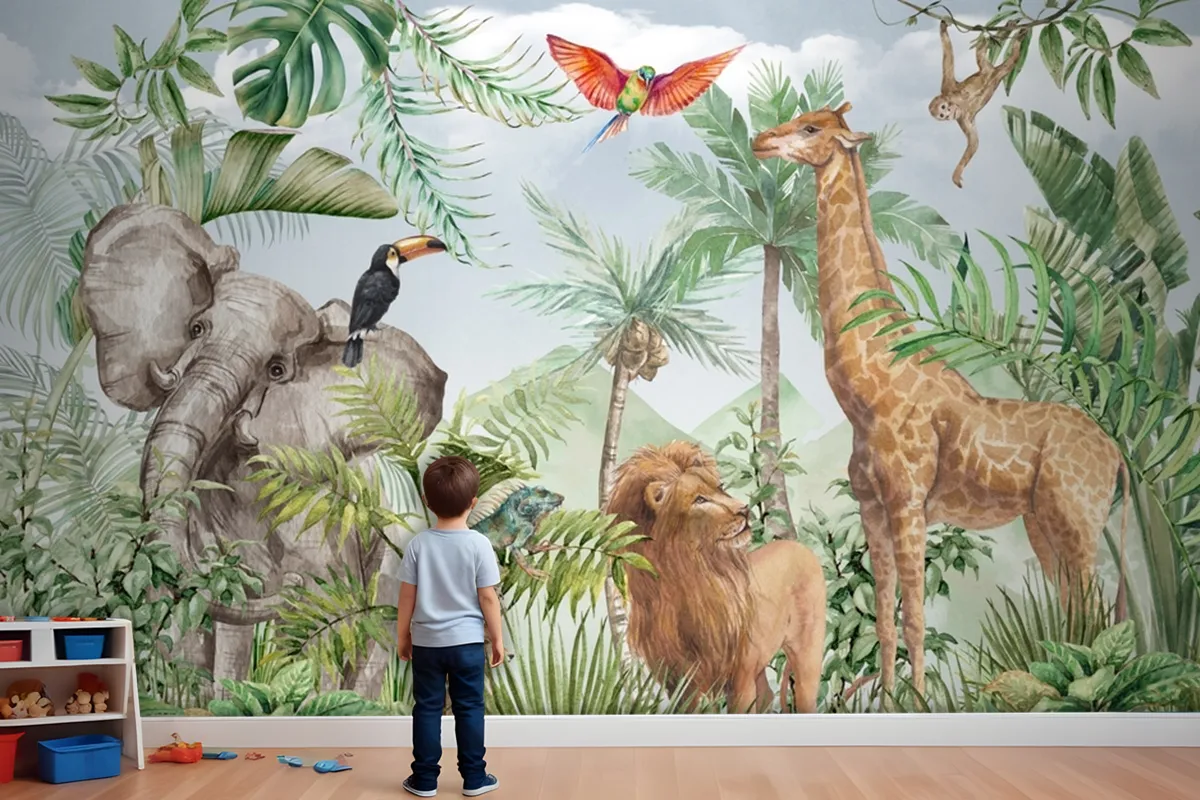 Suluboya Yaban Hayatı Afrika Hayvanları Çocuk Odası Duvar Kağıdı