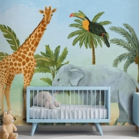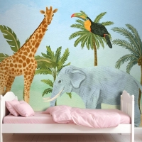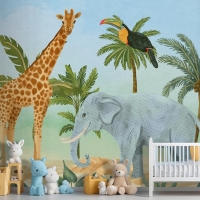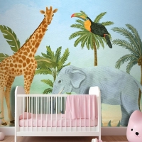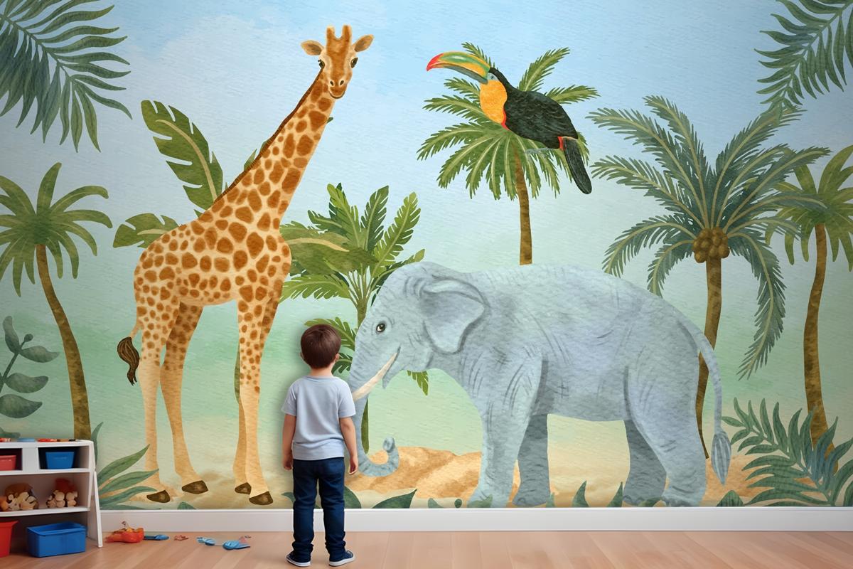 Suluboya Yaban Hayatı Arka Plan Çocuk Boys Çocuk Odası Duvar Kağıdı