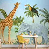 Suluboya Yaban Hayatı Arka Plan Çocuk Boys Çocuk Odası Duvar Kağıdı