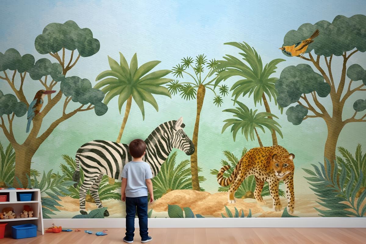 Suluboya Yaban Hayatı Arka Plan Çocuk Çocuk Odası Duvar Kağıdı