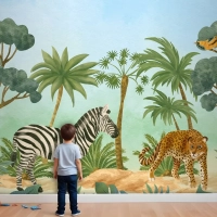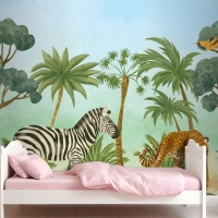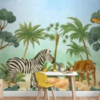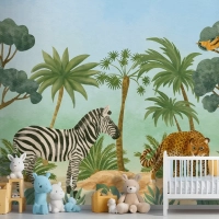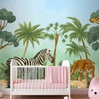Suluboya Yaban Hayatı Arka Plan Çocuk Çocuk Odası Duvar Kağıdı