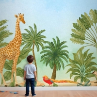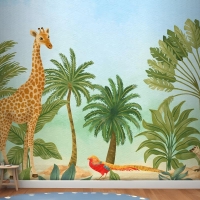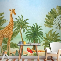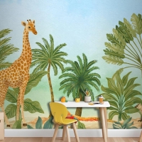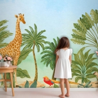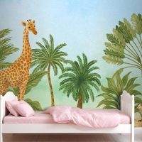 Suluboya Yaban Hayatı Arka Plan Çocuk Odası Duvar Kağıdı