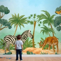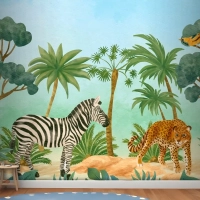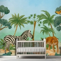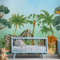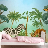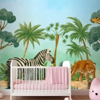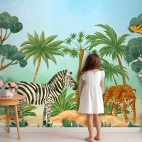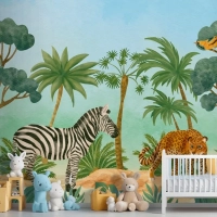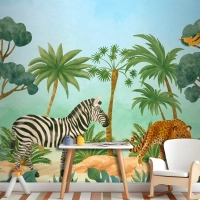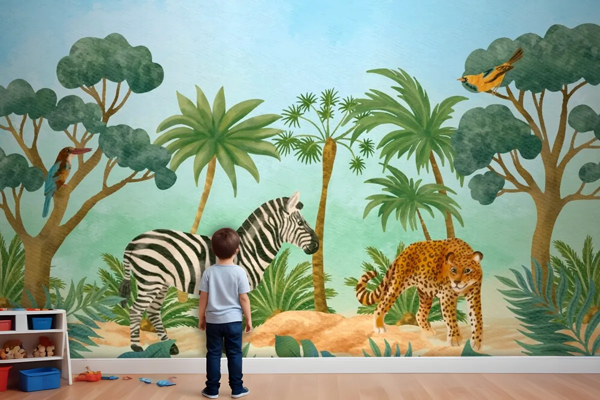Suluboya Yaban Hayatı Arka Plan Çocuk Odası Duvar Kağıdı