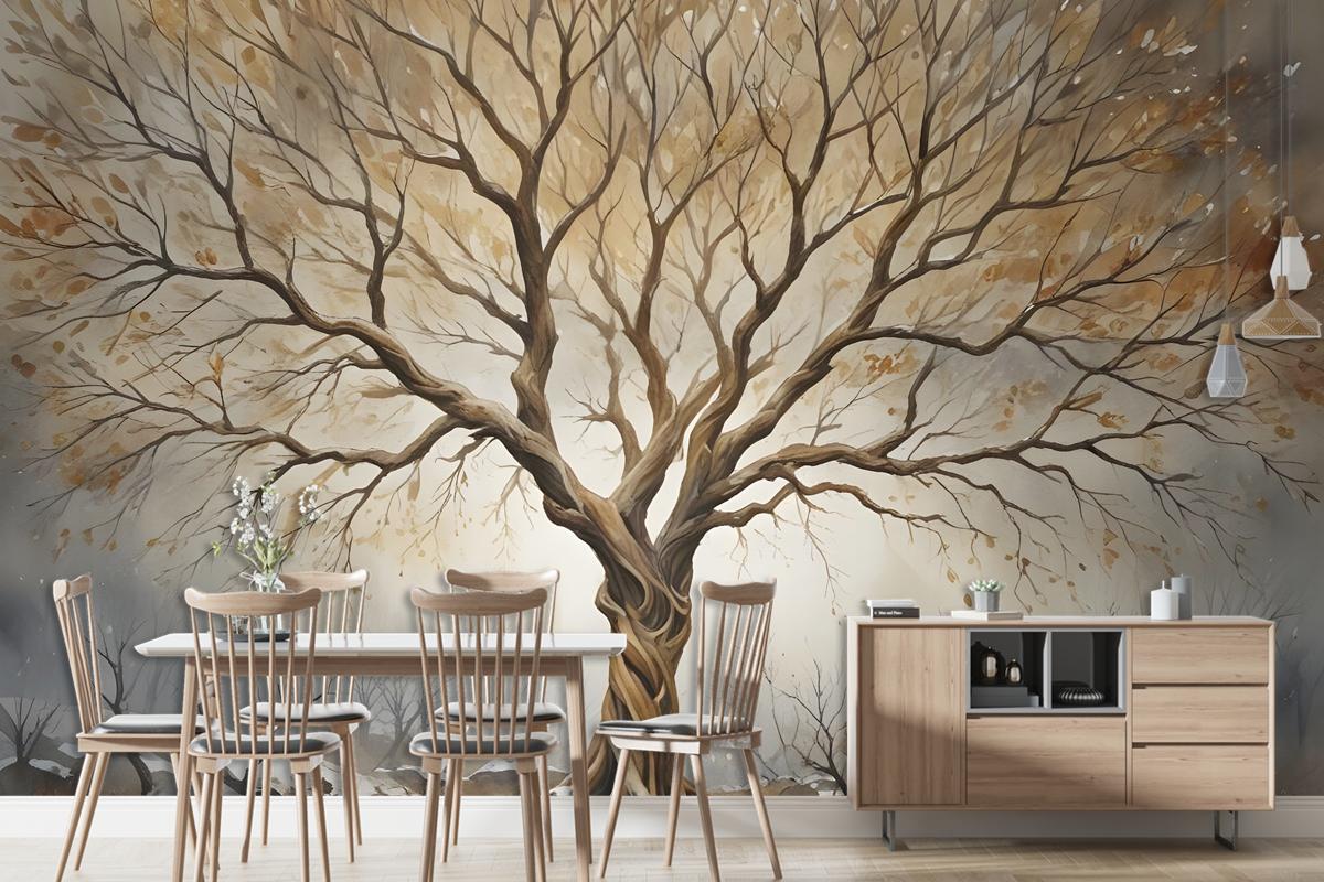Suluboya Yapraksız Sonbahar Ağaçları Duvar Kağıdı