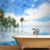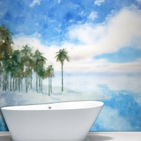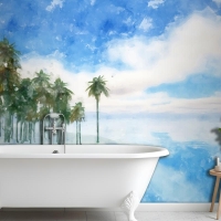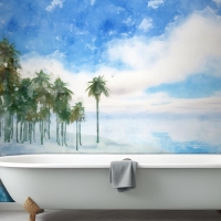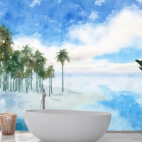 Suluboya Yaz Tropikal Arka Plan Banyo Duvar Kağıdı